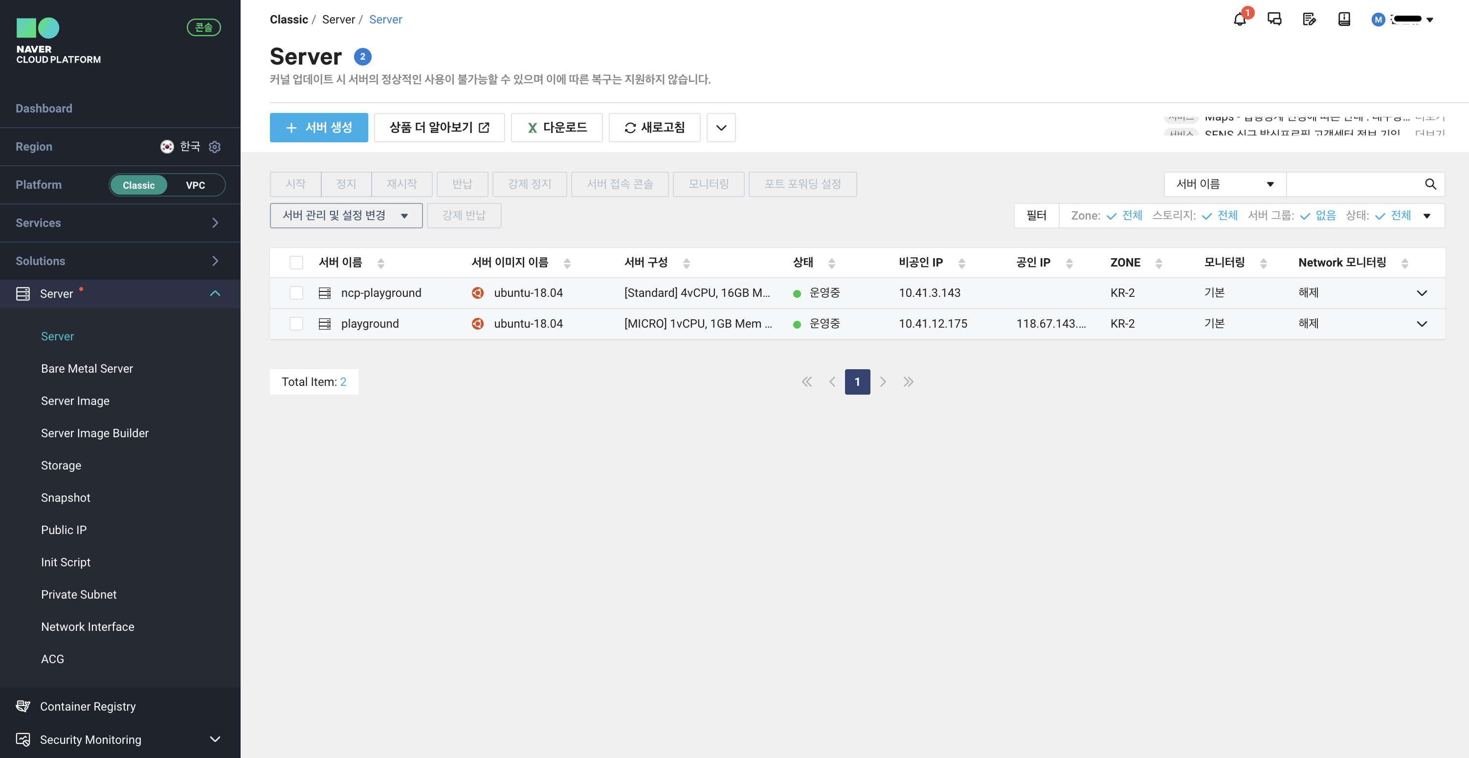 전체 설명은 다음 링크에 자세히 나와있다. https://guide.ncloud-docs.com/docs/server-create-classic