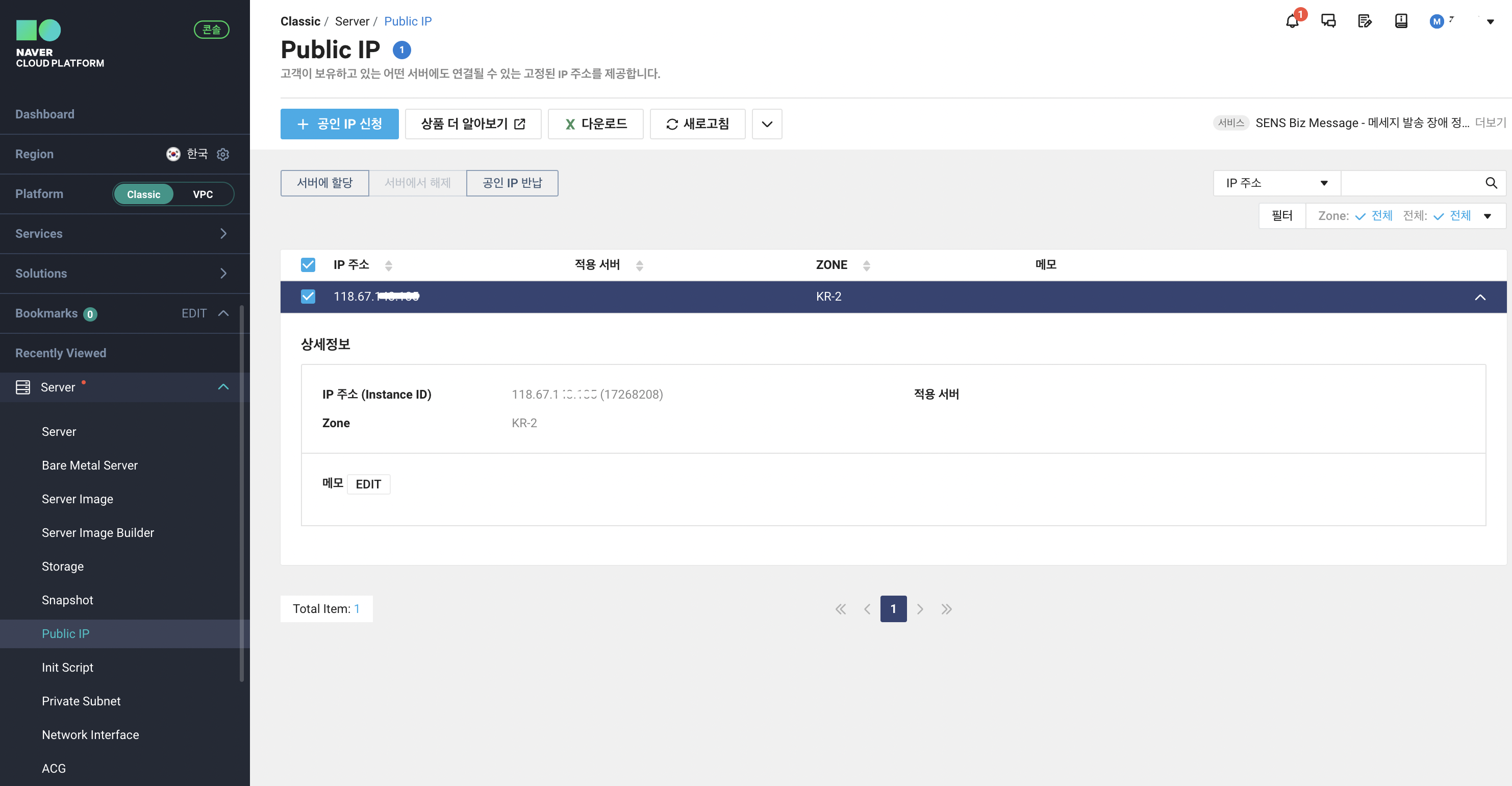 https://guide.ncloud-docs.com/docs/server-publicip-classic 링크를 확인하면 상세한 설명을 볼 수 있다.
