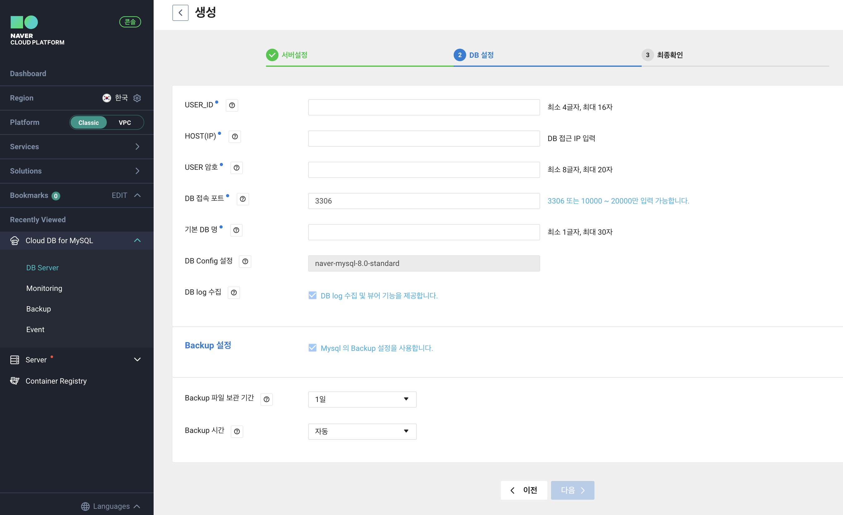 Naver Cloud Platform 활용기 - (2) Cloud DB for MySQL 생성하기